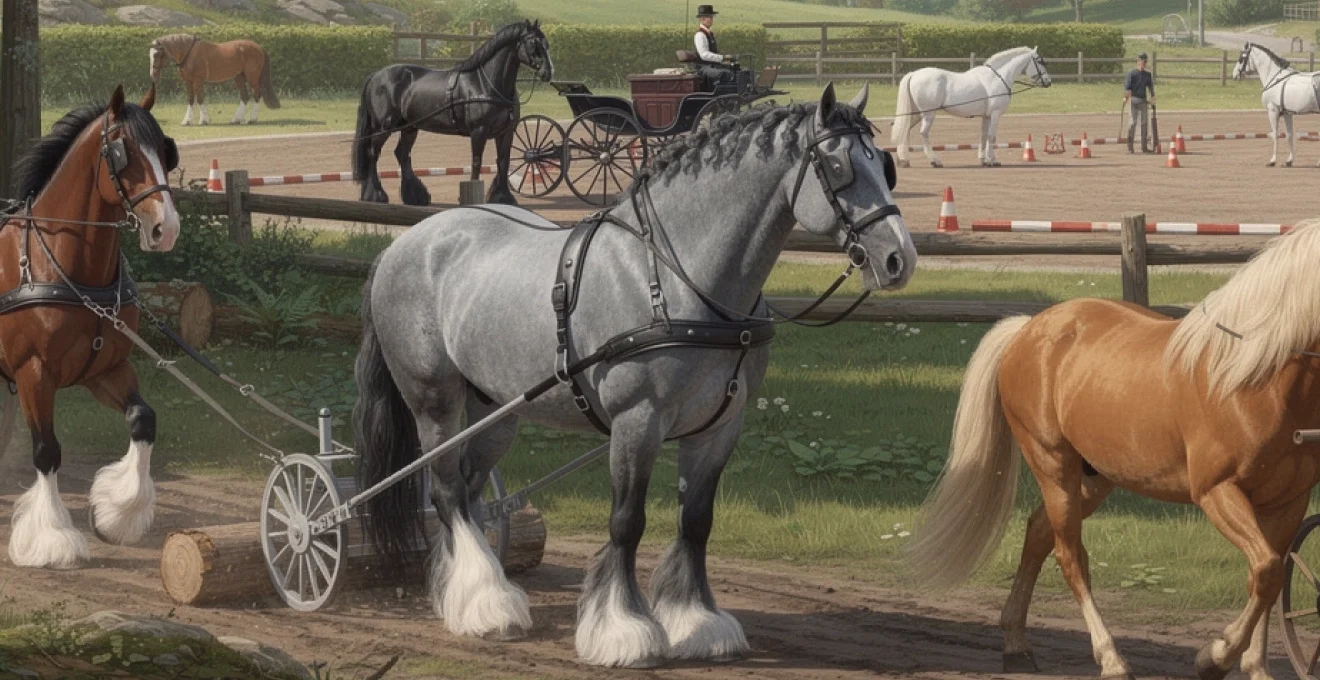 Le marathon d’attelage, épreuve reine des concours combinés, combine vitesse, endurance et franchissement d’obstacles naturels ou artificiels. Pour un cheval de trait, ce type de compétition représente un défi particulier : il s’agit de mobiliser sa puissance sans compromettre sa récupération ni surcharger ses articulations. Les parcours s’étendent généralement sur plusieurs kilomètres, ponctués de « obstacles de marathon » où l’attelage doit enchaîner des virages serrés, des gués, des montées et des descentes.